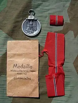 (de) Cet article est partiellement ou en totalité issu de l’article de Wikipédia en allemand intitulé « Medaille Winterschlacht im Osten 1941/42 » (voir la liste des auteurs).