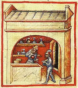 Par exemple, une guilde de médecins, apothicaires et épiciers (marchands d'épices) est fondée à Florence en 1293. Elle se sépare en trois guildes autonomes en 1314, celle des médecins se scinde à nouveau en 1392 lorsque les médecins universitaires établissent leur propre association distincte[28].