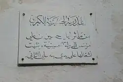 - (ar) Cet article est partiellement ou en totalité issu de l’article de Wikipédia en arabe intitulé « المدرسة الحسينية الكبرى » (voir la liste des auteurs).