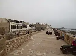 - des remparts de plus de 200 m de long, côté atlantique, de style Vauban, avec des plates-formes d'artillerie Sqala de la Kasbah, et Sqala du Port, avec nombreuses échauguettes, et batterie d'une vingtaine de vieux canons espagnols historiques en bronze du XVIIIe siècle...