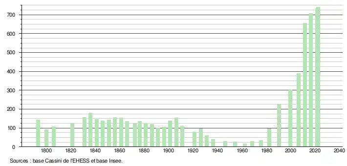 - ↑ Fiches Insee - Populations de référence de la commune pour les années 2006, 2007, 2008, 2009, 2010, 2011, 2012, 2013, 2014, 2015, 2016, 2017, 2018, 2019, 2020, 2021 et 2022.
