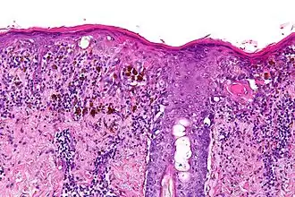- ↑ « Lentigo maligna/lentigo maligna melanoma: current state of diagnosis and treatment », Dermatol Surg, vol. 32, no 4, , p. 493–504 (PMID 16681656, DOI 10.1111/j.1524-4725.2006.32102.x)