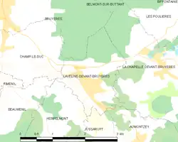 La commune est à 2,6 km de Viménil, 3,2 de Aydoilles, 10,2 de Bruyères et 13,7 de Épinal[19].