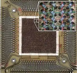 La mémoire à tores magnétiques fut la forme dominante de mémoire vive des ordinateurs durant 20 ans (de 1955 à 1975).
