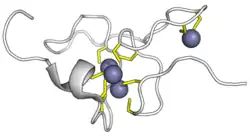 - ↑ Braun W, Vasak M, Robbins AH, Stout CD, Wagner G, Kagi JH, Wuthrich K. Comparison of the NMR solution structure and the X-ray crystal structure of rat metallothionein-2. Proc Natl Acad Sci U S A 89: 10124–10128, 1992.