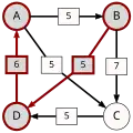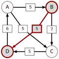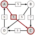 p[A,B] : = max { min { d[C(i),C(i+1)] | i = 1,...,(n-1) } | C(1),...,C(n) est un chemin de A vers B }