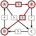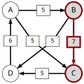 On élimine à nouveau l’arc à la pondération la plus faible, qui part de C pour aller vers E.