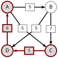 1. éliminer du graphe les sommets qui n'appartiennent pas à son ensemble de Schwartz (les arcs ayant pour origine ou extrémité un sommet supprimé sont supprimés également) ;