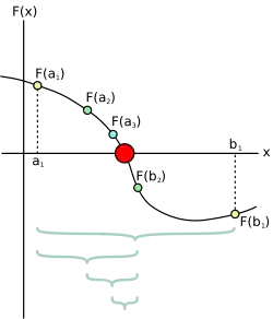 La méthode de dichotomie ou méthode de la bissection est, en mathématiques, un algorithme de recherche d'un zéro d'une fonction qui consiste à répéter des partages d’un intervalle en deux parties puis à sélectionner le sous-intervalle dans lequel existe un zéro de la fonction.