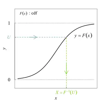 La méthode de la transformée inverse est une méthode permettant d'échantillonner une variable aléatoire X de loi donnée à partir de l'expression de sa fonction de répartition F et d'une variable uniforme sur [0, 1].