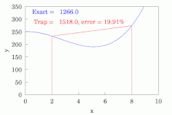 L'erreur d'approximation par un polynôme de Taylor est le reste de la série de Taylor, et l'erreur de quadrature correspond à la différence entre l'aire totale sous la courbe et la somme des aires des trapèzes [2],[3],[4].
