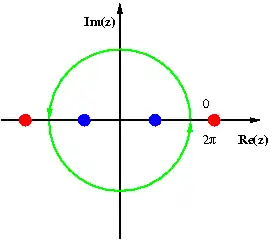 - l'intégrale est réduite à une intégration autour d'un petit cercle autour de chaque pole