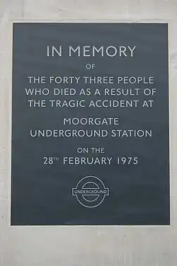 L'accident le plus grave sur le métro de Londres a lieu le . Un train de la Northern City Line ne s'arrête pas à son terminus Moorgate. Il achève sa lancée contre un mur avec ses passagers. La collision fait 43 morts (dont le conducteur du train) et 74 blessés graves. La cause de l'accident reste un mystère à ce jour ; il n'y avait pas de problèmes avec le train ou les voies et le conducteur n'était ni ivre ni drogué[11].