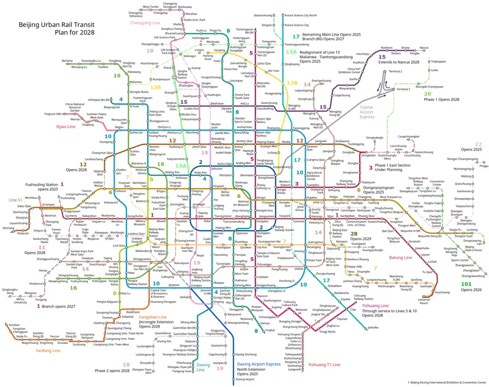 Après l'extension importante nécessitée par les Jeux Olympiques de 2008 à Pékin, la construction et l'extension de lignes continue à grands pas.