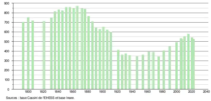 - ↑ Population municipale de référence en vigueur au 1er janvier 2025, millésimée 2022, définie dans les limites territoriales en vigueur au 1er janvier 2024, date de référence statistique : 1er janvier 2022.