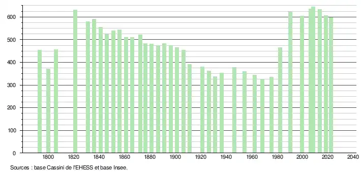 (Sources : Ldh/EHESS/Cassini jusqu'en 1999[16] puis Insee à partir de 2006[22].)