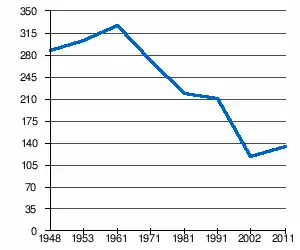 - 1 2 (sr + en) « Livre 20 : Vue d'ensemble comparative de la population en 1948, 1953, 1961, 1971, 1981, 1991, 2002 et 2011, données par localités) » [PDF], pages du recensement de 2011 en Serbie - Institut de statistique de la république de Serbie, (consulté le )