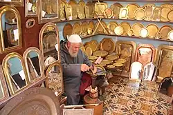 • Le bois tourné : l'artisan nommé "Al Kharrat" utilise diverses essences de bois comme l'ébène, le sangho, le citronnier et le cèdre. L'outillage de l'artisan se compose d'un tour manuel "Lamkharta", d'un archet et d'un burin.