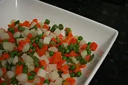 C'est généralement un mélange composé de dés, soit de carottes, petits pois et autres légumes, soit de divers fruits.