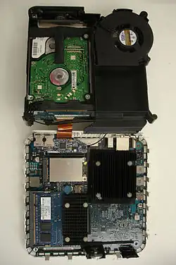 | Processeur graphique | ATI Radeon 9200 avec 32 Mio de DDR SDRAM. | ATI Radeon 9200 avec 32 ou 64 Mio de DDR SDRAM. | Intel GMA 950 avec 64 Mio de DDR2 SDRAM partagée (jusqu'à 224 Mio sur Windows avec Boot Camp)[11] | nVidia GeForce 9400M avec 128 ou 256 Mio DDR3 SDRAM partagés 256 Mio avec au moins 2 Gio de mémoire vive | |||