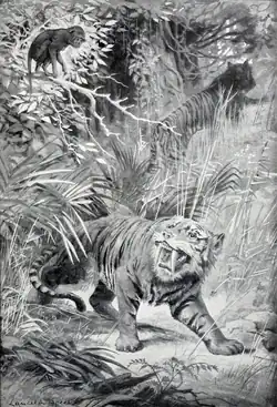 « Tigre à dents de sabre ». Illustration non scientifique de Lancelot Speed (en), 1905.