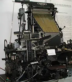 - ↑ Richard E. Huss, The Development of Printers' Mechanical Typesetting Methods, 1822-1925, University of Virginia, 1973, 307 p.
