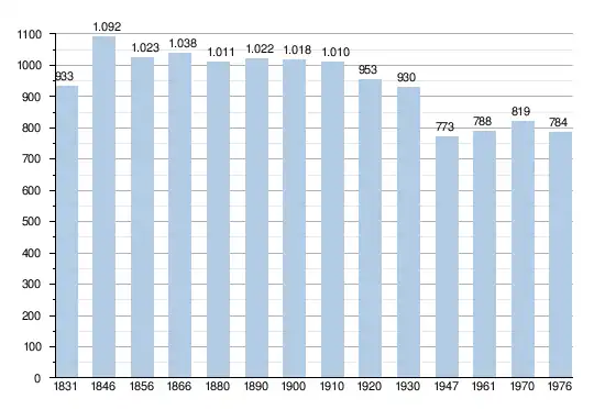 - Sources : INS, Rem. : 1831 jusqu'en 1970 = recensements, 1976 = nombre d'habitants au 31 décembre.