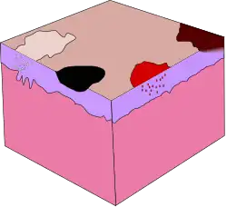 Les couleurs, formes et épaisseur des macules varient selon leur nature et la couleur de la peau