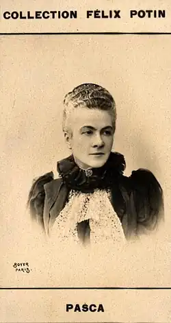 - « Obsèques au cimetière Montmartre de Mme Pasca », Le Figaro, 29 mai 1914, lire en ligne sur Gallica.