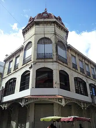 La construction du dôme coiffant la tour d'angle hexagonale est confiée à l'architecte Pierre-Henri Picq, qui a déjà œuvré sur la cathédrale, la Bibliothèque Schœlcher et la halle du marché, qui réalise ici l'un de ses rares édifices pour particulier. Ce bâtiment abrite successivement de nombreux commerces depuis le début du XXe siècle.