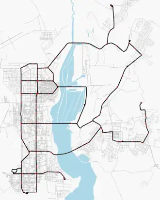 Magnitogorsk possède au total 833 km de voies (rues, routes, quais…), 15 km de berges et 12 ponts qui permettent de traverser l’Oural[5].