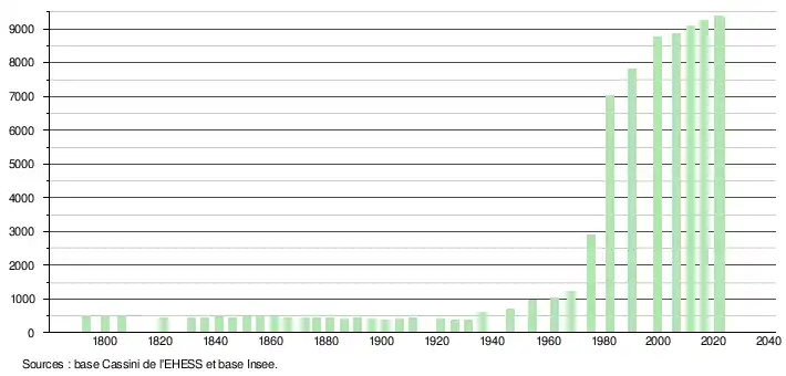 - ↑ Population municipale de référence en vigueur au 1er janvier 2025, millésimée 2022, définie dans les limites territoriales en vigueur au 1er janvier 2024, date de référence statistique : 1er janvier 2022.