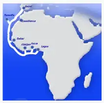 La première phase relie le Portugal au Nigeria et au Ghana sur 6 900 kilomètres. La deuxième phase du projet relie l'Angola et l'Afrique du Sud.
