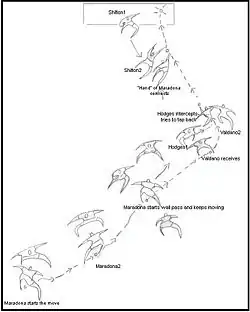 La « Main de Dieu » (espagnol : Mano de Dios) fait référence à l'expression utilisée par Diego Maradona pour qualifier son but marqué volontairement avec la main, contre l'Angleterre (score final 2-1 pour l'Argentine) lors du quart de finale de la Coupe du monde 1986, le , dans le stade Azteca de Mexico (Mexique). Il s'agit d'un geste illicite que le corps arbitral, estimant que Maradona a marqué de la tête, ne voit pas.