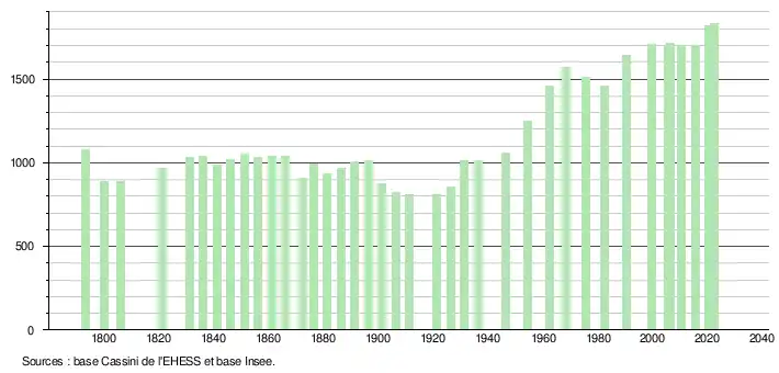 - ↑ Fiches Insee - Populations de référence de la commune pour les années 2006, 2007, 2008, 2009, 2010, 2011, 2012, 2013, 2014, 2015, 2016, 2017, 2018, 2019, 2020, 2021 et 2022.