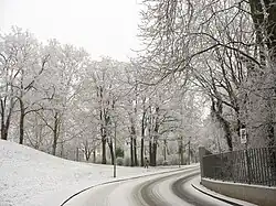 Partant de là vers l'est, le quartier en forme de ruban occupe le côté gauche de la vallée du Zaybach, avec le cimetière principal au nord, le cimetière juif à son extrémité sud, et encore au sud les restes de l'aqueduc romain (Attach ou Aquädukt ou Römersteine), avec au milieu la clinique Hildegardis-Krankenhaus. Cette partie de la vallée du Zaybach aux pentes fort inclinées correspond à la partie nord de l'ancien lieu-dit Zahlbach (de), incorporé à Mayence depuis 1804.