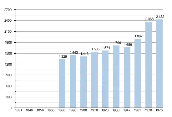 - Sources : INS, Rem. : 1831 jusqu'en 1970 = recensements, 1976 = nombre d'habitants au 31 décembre.