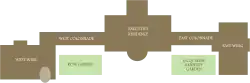 Il est difficile de se rendre compte de la taille de plus de 5 100 m2[55],[36] de la Maison-Blanche, car une grande partie est souterraine ou cachée par le paysage. Elle comporte[56] :