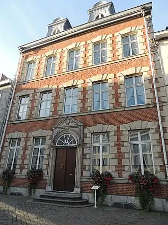 L'imposante façade symétrique de cette demeure patricienne comporte trois niveaux et cinq travées. Elle est bâtie en brique et pierre de taille pour le soubassement et les différents encadrements des baies.