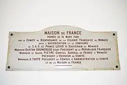 La Maison de France a été fondée le par le Comité de bienfaisance de la colonie française de Monaco avec l'autorisation et le concours du prince Louis II souverain de Monaco, Gaston Doumergue (président de la République française), le baron Pieyre (consul général de France à Monaco et président d'honneur du Comité) et A. Taffe (président du conseil d'administration du Comité et de la Maison de France).