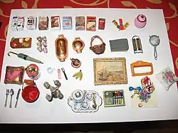 Les miniatures utilisées pour décorer ces maisons représentent des meubles, des décorations d'intérieur, des poupées et d'autres objets comme des livres ou des horloges. Elles sont disponibles dans le commerce, mais elles peuvent également être faites à la main.