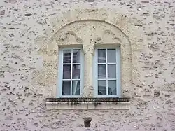 Le pignon occidental est percé, à l'étage, d'une baie géminée dont le meneau supporte un chapiteau à décor végétal. Les linteaux de chacune des deux fenêtres ainsi constituées sont décorés d'une arcature trilobée[6].