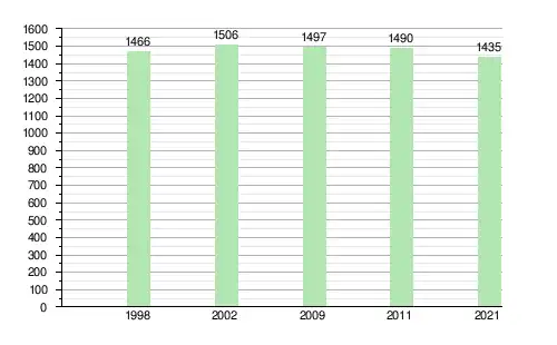 En 2021, le village de Majdan Sieniawski comptait 1 435 habitants, en diminution de −2,11 % par rapport à 1998[6]. En 2021, 59,3 % des habitants du village de Majdan Sieniawski sont en âge de travailler (entre 18 et 64 ans pour les hommes et 18 et 59 ans pour les femmes). 20 % des habitants ont moins de 18 ans et 20,7 % ont l'âge légal de la retraite. Les personnes en âge de travailler représentent 58,3 % de la population de la voïvodie des Basses-Carpates et 52,4 % de la population de Pologne. Ainsi, le taux de dépendance démographique du village de Majdan Sieniawski est équivalent à celui de la voïvodie des Basses-Carpates et inférieur à celui de la Pologne[7].