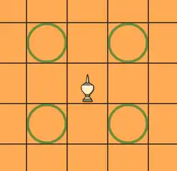 - Une « graine » (เม็ด Met), à la place de la dame, son mouvement est limité à une case en diagonale (comme le conseiller au Chatrang).