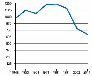 | 970 | 1 123 | 1 058 | 1 226 | 1 233 | 1 155 | 783[2] | 670[1] |