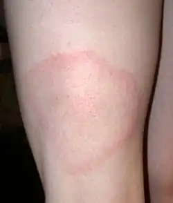 - En 1909, Arvid Afzelius (dermatologue suédois) avait noté l'apparition d'une autre lésion cutanée en forme d'anneau, suivant parfois une morsure de tique Ixodes, et qu'il appelle érythème migrant[2]. En 1913, Bruce Lipschutz (dermatologue autrichien) l'appelle érythème chronique migrant.