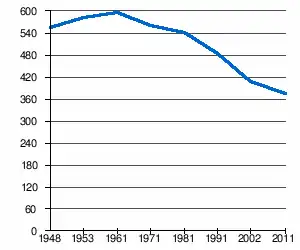 - 1 2 (sr + en) « Livre 20 : Vue d'ensemble comparative de la population en 1948, 1953, 1961, 1971, 1981, 1991, 2002 et 2011, données par localités) » [PDF], pages du recensement de 2011 en Serbie - Institut de statistique de la république de Serbie, (consulté le )