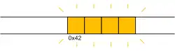 Par exemple, l'appel malloc(4) alloue 4 octets dans le tas mémoire et renvoie l'adresse du premier octet (sur l'image 0x42).