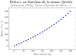 - v est la variation de vitesse entre le début et la fin de la phase propulsée considérée ;