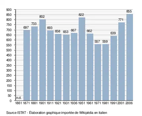 - ↑ (it) Popolazione residente e bilancio demografico sur le site de l'ISTAT.